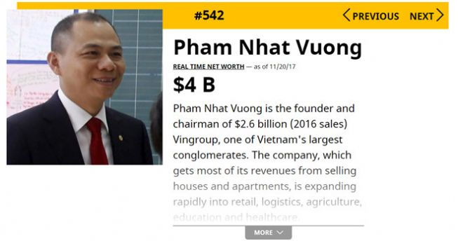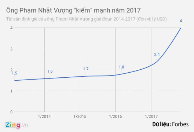 Nếu tính từ tháng 3/2017, theo định giá của Forbes, ông Vượng đã kiếm về khoảng 1,6 tỷ USD.