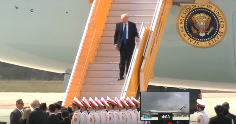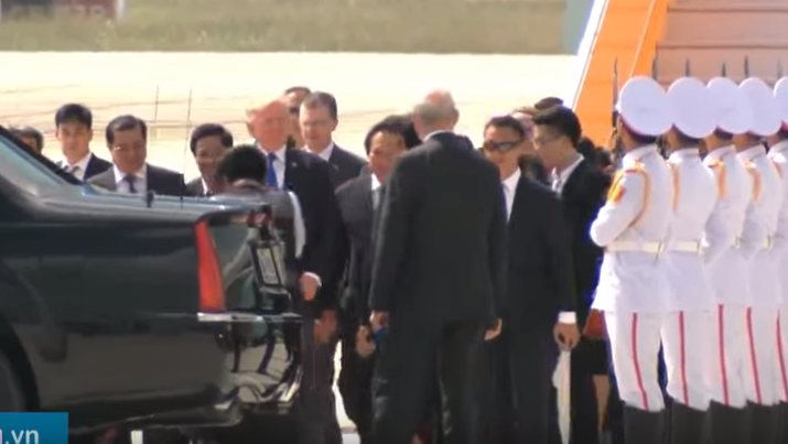Tổng thống Trump bắt tay các quan chức Việt Nam ra đón ông tận cầu thang máy bay. Ngay sau đó, Tổng thống và đoàn Mỹ di chuyển trên những chiếc siêu xe, rời sân bay về khách sạn ở trung tâm thành phố Đà Nẵng. Tại đây, Tổng thống sẽ bắt đầu các hoạt động Hội nghị Thượng đỉnh APEC và có bài phát biểu quan trọng trước lãnh đạo cấp cao của các nền kinh tế thành viên APEC.