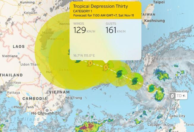 Wunderground dự báo, sau khi băng qua Philippines vào hôm nay, vào ngày mai 10/11, áp thấp nhiệt đới số 30 được dự báo sẽ tăng cấp và trở thành cơn bão số 13 trên biển Đông.