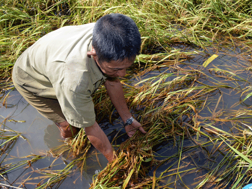 Theo nhiều nông dân trong vùng, phần lớn số lượng lúa bị ngã và ngập nước thì thương lái chưa chịu mua, vì lúa xấu và đen. Chưa kể khi phơi khô lúa sẽ còn bị hao hụt khoảng 20% nữa.