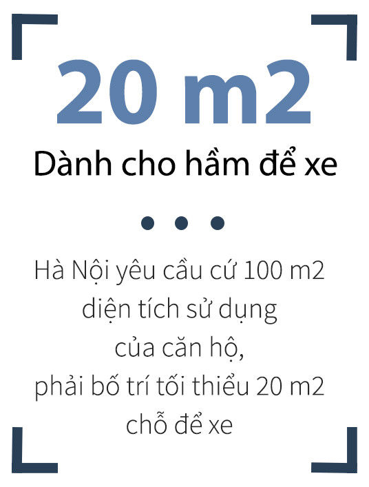 Các dự án đầu tư xây mới ở Hà Nội phải có đủ chỗ để xe cho nhu cầu của công trình. Riêng với chung cư thương mại, cứ 100m2 thì phải có 20m2 dành ra để làm chỗ đỗ xe.