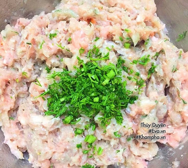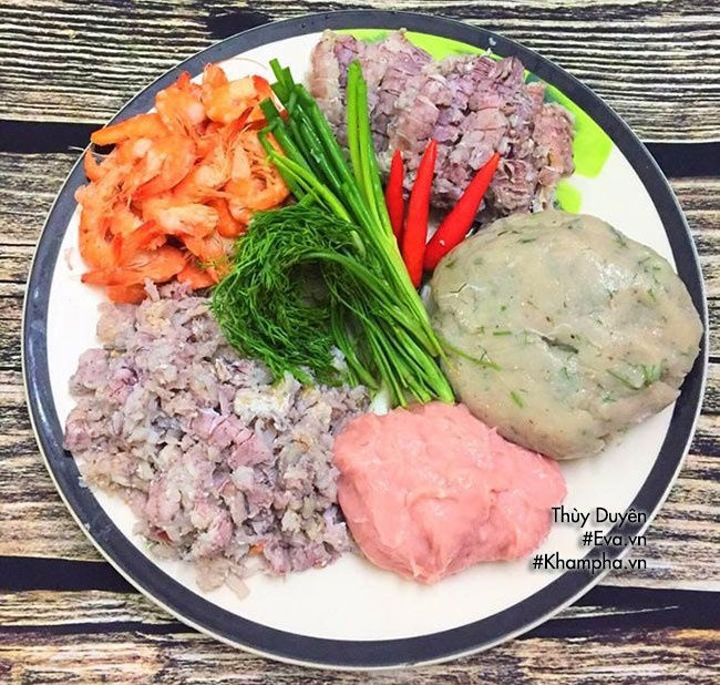 Bước 1: Bề bề bóc nõn nguyên con và tôm nõn hấp chín để riêng. Chuẩn bị một âu to cho tất cả các nguyên liệu: bề bề vụn, chả cá xay (nếu không có chả cá xay sẵn có thể thay thế bằng thịt nạc vai xay) và giò sống vào nêm 1 thìa hạt nêm, 1 thìa cafe hạt tiêu cùng chút hành thì là vào trộn thật đều.