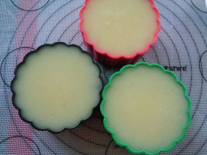 Cứ thế bạn cứ canh lớp thạch này vừa đông là nhẹ nhàng đổ lớp thạch khác lên trên. Sau khi đổ thạch đầy khuôn thì cho vào ngăn mát tủ lạnh để vài tiếng cho thạch đông lạnh trước khi dùng.