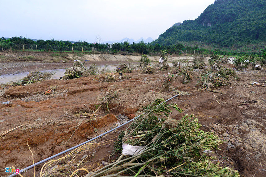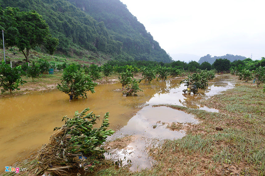 Hàng nghìn cây cam ở huyện Cao Phong đổ gục xuống nước hoặc rụng tơi tả khi chuẩn bị vào mùa thu hoạch khiến mỗi hộ nông dân bị thiệt hại từ hàng chục đến hàng trăm triệu đồng.