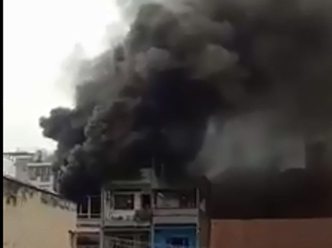 Ngọn lửa bùng cháy dữ dội, kèm theo cột khói đen bao trùm cả căn nhà tại khu chợ phụ tùng xe máy lớn nhất TP.HCM khiến nhiều tiểu thương hốt hoảng.