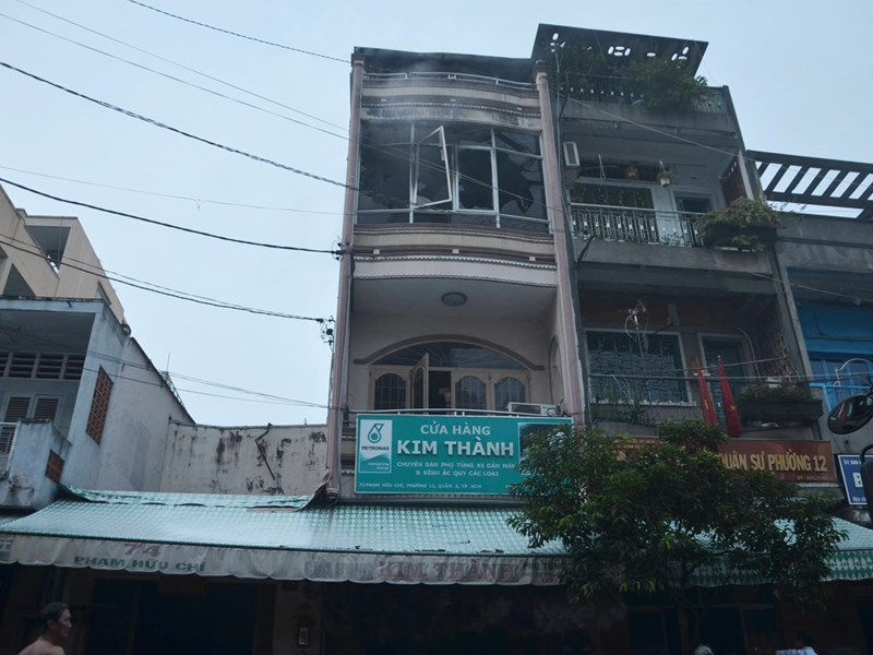 Khói lửa bùng phát từ ngôi nhà đồng thời là cửa hàng kinh doanh phụ tùng xe máy trên đường Phạm Hữu Chí, quận 5