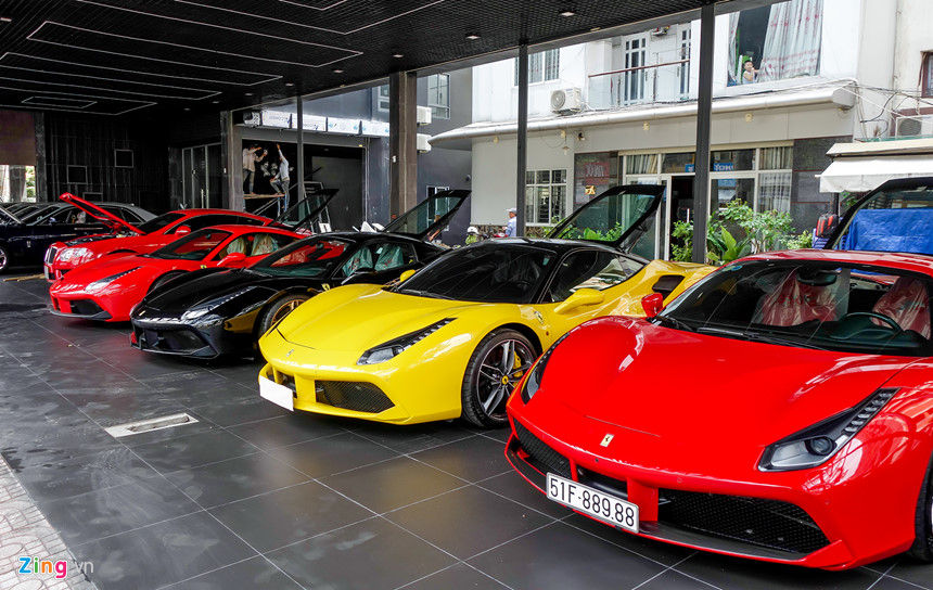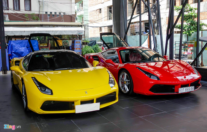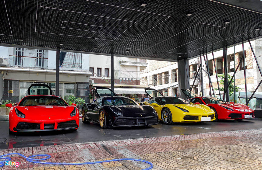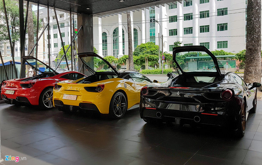Số lượng siêu xe tại TP.HCM đã lên tới hàng trăm chiếc, vì vậy các giao dịch, trao đổi cũng nhộn nhịp hơn. Một cửa hàng tại TP.HCM hiện trưng bày toàn siêu xe và xe siêu sang để bán cho các khách hàng giàu có.Có bốn chiếc Ferrari 488 GTB cùng được trưng ở đây. Giá trị mỗi chiếc ước tính khoảng 15 tỷ đồng, tổng giá trị dàn siêu xe này là trên 60 tỷ đồng.Đây đều là những chiếc xe đã qua sử dụng. Chủ xe mua về sau vài tháng nhưng có nhu cầu đổi xe mới thường đem tới đây ký gửi, chờ khách hàng mới rước về. Trong khi thị trường xe sang và xe bình dân trầm lắng thì phân khúc siêu xe và xe siêu sang không bị ảnh hưởng nhiều do khách hàng đều thuộc giới siêu giàu.Đây là chiếc Ferrari 488 GTB màu đen, về Việt Nam từ trước tháng 7/2016. Ferrari tại Việt Nam khá nhiều nhưng đa phần màu đỏ và màu trắng, vì vậy chiếc xe màu đen trở thành hàng hiếm.Ferrari 488 GTB là thế hệ đàn em của 458 Italia. Xe sử dụng động cơ tăng áp, dung tích 3,9 lít, công suất cực đại lên tới 661 mã lực và 760 Nm mô-men xoắn. Đây là chiếc thứ 5 của dòng này tại Việt Nam, về nước hồi tháng 4/2016.Trong các model của Ferrari, 488 GTB được các thiếu gia Sài Gòn ưa chuộng nhất bởi kiểu dáng đẹp và mức giá hợp lý. Tuy nhiên từ sau khi tăng thuế tiêu thụ đặc biệt, các dòng siêu xe hiếm có cơ hội về Việt Nam, vì vậy thị trường siêu xe trong nước chủ yếu mua đi bán lại những chiếc xe cũ.Ngoài Ferrari, địa điểm này còn có ba chiếc Rolls-Royce, gồm hai chiếc Wraith và một chiếc Ghost. Bên cạnh là chiếc BentleyContinental GT V8 giá trên 11 tỷ đồng.