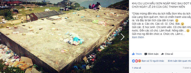 "Ở xung quanh khu vực cắm trại trên đỉnh núi Mẫu Sơn sau những dịp nghỉ lễ, rất nhiều nhóm bạn trẻ tổ chức cắm trại, ăn uống, đốt lửa xong xả rác tại chỗ. Các công nhân vệ sinh môi trường cũng rất bức xúc về chuyện này", 9X nói.
