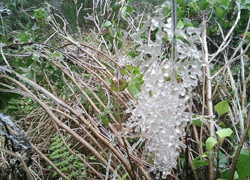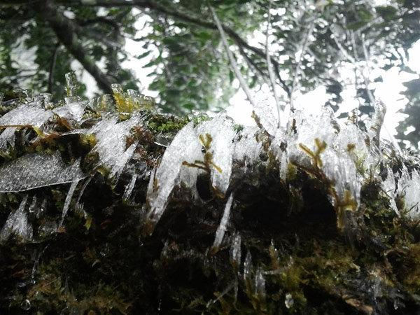 Theo thông tin hôm nay 1/11, nhiềudu khách tham quan đỉnh núi Fansipan - nơi có độ cao 3.143 m so với mực nước biển - bất ngờ khi thấy cây cỏ bao phủ một lớp băng giá trong suốt. Một số triền núi dốc, băng đóng thành hình lưỡi kiếm. Nhiệt độ ngoài trời xuống 0 độ C.