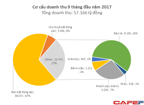 Doanh thu từ hệ thống Vinmec quý 3 năm 2017 đạt 491 tỷ đồng, tăng 65,8% so với cùng kỳ năm trước. Doanh thu các mảng hoạt động bán lẻ; cho thuê bất động sản đầu tư; dịch vụ khách sạn nghỉ dưỡng, vui chơi giải trí; giáo dục đều duy trì tốc độ tăng trưởng tốt so với cùng kỳ năm trước với tỷ lệ tăng từ 12,6% đến 47,7%.