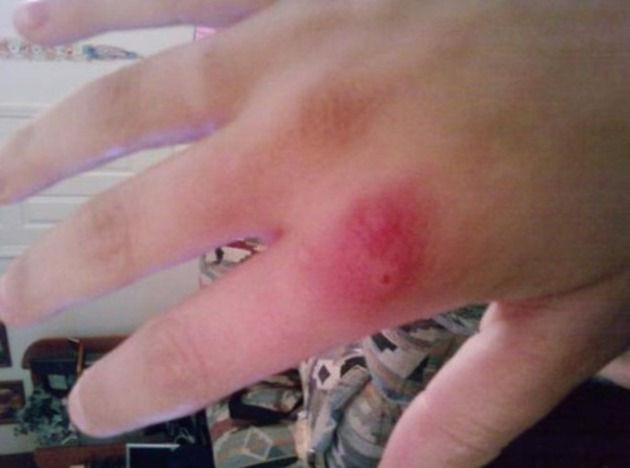 Để xác định vết chích của nhện, hãy nhìn vào vùng bị thương. Nếu thấy 2 vết đỏ như trong ảnh, hãy đến bệnh viện ngay, đặc biệt khi bạn sống trong trong khu vực có nhện độc sinh sống nhiều.