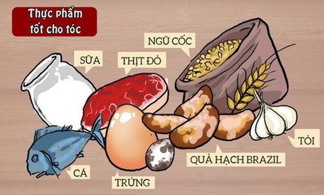 Trước tiên để kích thích tóc nhanh dài mà lại chắc khỏe bạn nên chăm sóc chúng từ bên trong, ăn nhiều các thực phẩm chứa các loại axit béo, omega 3 như cá hồi, cá trích, cá thu, dầu bơ, dầu oliu, dầu lạc,...uống nhiều nước và bổ sung vitamin E.