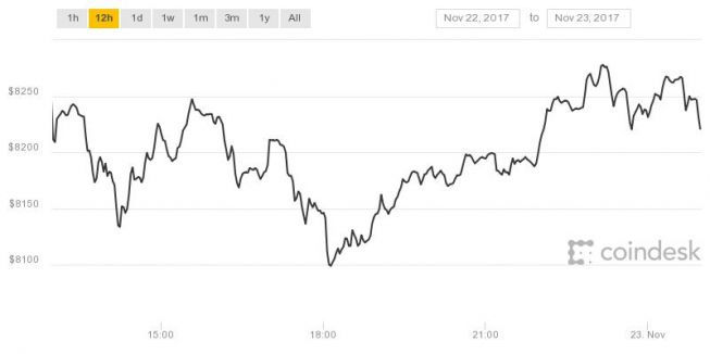 Ghi nhận thị trường Việt Namlúc 8hsáng 23/11, Bitcoin đạt con số 8.228,62 USD. Trong 12 giờ qua, giá Bitcoin hầu như ít thay đổi giá trị quanh mốc trên dưới 8.200 USD.