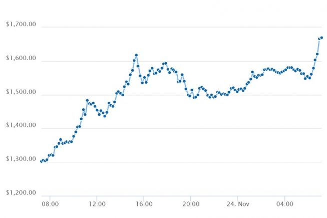 Trong khi đó, Bitcoin Cash tiếp tục có sự tăng trưởng nhanh chóng, hiện đạt 1.661,34 USD, tăng 27,34% trong phiên giao dịch. So với biên độ giá trị tăng trong tuần thì Bitcoin Cash đã vượt mặt nhanh hơn cả Bitcoin (25%), nâng tổng giá trị vốn hóa gần 28 tỷ USD.