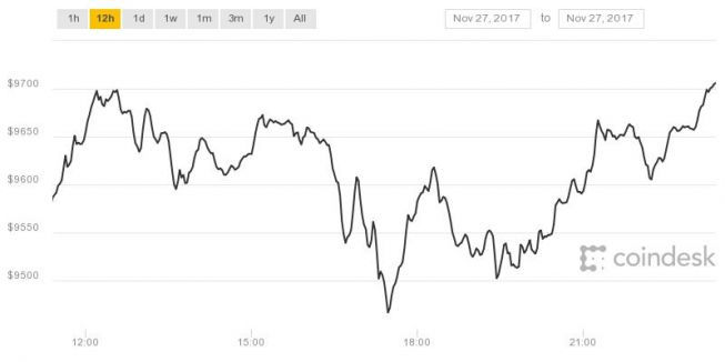 Phiên giao dịch cuối ngày 27/11, giá Bitcoin tiếp tục tăng giá lên hơn 9.700 USD, dự báo vượt 10.000 USD trong tuần này.
