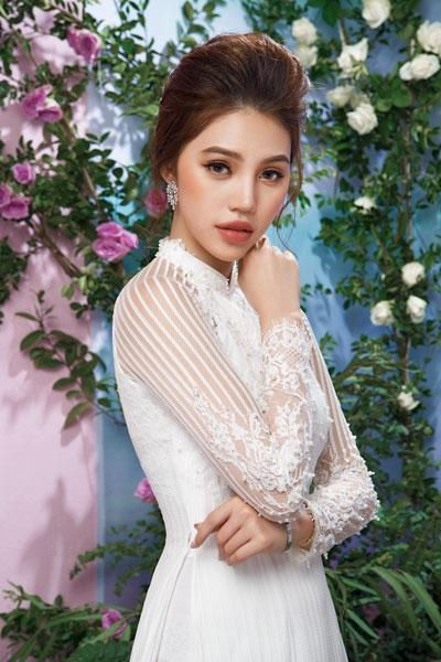 Hoa hậu người Việt tại Úc Jolie Nguyễn thoát khỏi hình ảnh sexy, gợi cảm thường thấy mà trở nên thướt tha, mong manh hơn trong tà áo dài truyền thống.