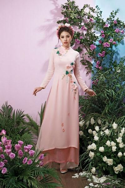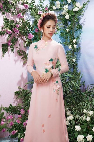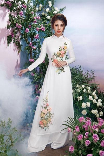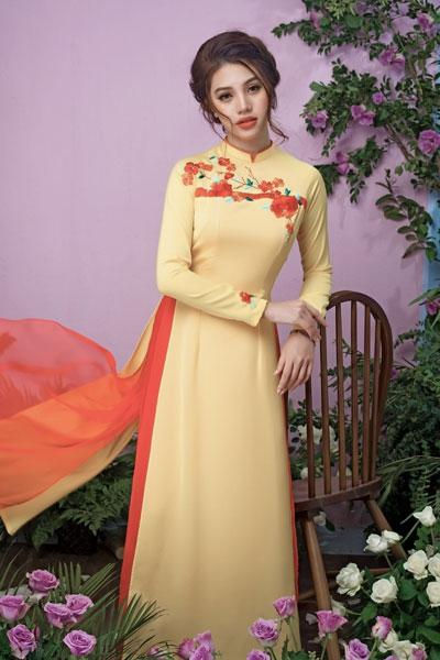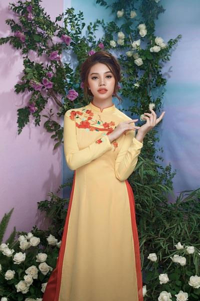 Trong các thiết kế áo dài truyền thống, Hoa hậu người Việt tại Úc Jolie Nguyễn đã thể hiện được khí chất, phong thái của một cô gái Việt, dù đường nét trên khuôn mặt của cô khá hiện đại.Jolie Nguyễn đặc biệt phù hợp với các mẫu thiết kế tinh tế, cầu kỳ của tà áo dài màu trắng. Các họa tiết thêu hoa, đính cườm kết hợp với những họa tiết quả tram khiến cô toát lên nét đẹp của các cô gái hiện đại.Cũng giống như thiết kế trên, chiếc áo dài trắng mang họa tiết kẻ sọc và những đường thêu tay, đính kết cầu kỳ ở tay và ngực áo khiến Jolie Nguyễn thanh thoát hơn.Trong một thiết kế khác, Jolie Nguyễn chọn cho mình chiếc áo dài hồng phớt kết hợp cùng mấn hoa đốt cùng gu. Áo mang màu sắc nhẹ nhàng, nên đã được phối những bông hoa đốt lớn tạo điểm nhấn trên khuôn ngực và đường eo cho người mặc. Jolie Nguyễn dường như thoát khỏi hình ảnh sexy, gợi cảm thường thấy và trở nên mong manh hơn.Jolie Nguyễn mang nét đẹp khá tây với đôi mắt biết nói và khóe miệng biết cười. Do đó, khi khoác lên mình chiếc áo dài hiện đại, cô chỉ cần tạo tóc đơn giản cũng đủ đẹp mê ly.Có lẽ, hiếm khi nào người ta lại thấy Jolie Nguyễn dịu dàng như lúc này.Với màu vàng phối đỏ cảm trên tà áo dài, Jolie Nguyễn toát lên vẻ đẹp nhẹ nhàng, dịu dàng của con gái Việt.Mặc dù chỉ đính kết đơn giản, những những màu sắc khá hợp tông cùng màu son đã khiến Jolie Nguyễn nổi bật hơn. ở góc độ này, ít ai nhận ra một Hoa hậu người Việt sexy thường ngày.Jolie Nguyễn tên thật là Nguyễn Phương Mai, sinh năm 1997, sở hữu chiều cao 1m70 với các số đo 86-58-88. Cô gái trẻ này vừa giành vương miện hoa Hoa hậu Thế giới người Việt tại Úc 2015.