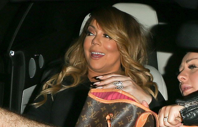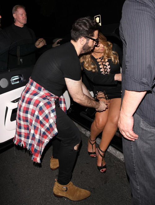Mặc váy xẻ táo bạo, Mariah Carey khốn khổ khi bước lên xe