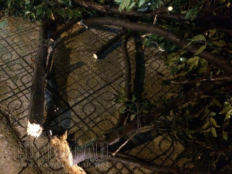 Ông Nguyễn Xuân Châu (55 tuổi, ngụ quận Gò Vấp) cho hay: "Lúc đó mưa to gió lớn lắm. Gió giật làm nhánh cây gãy đè lên mái tôn, bên trong có hai nhân viên đang bán thuốc trong tiệm nhanh chóng chạy kịp ra ngoài thoátthân ”.