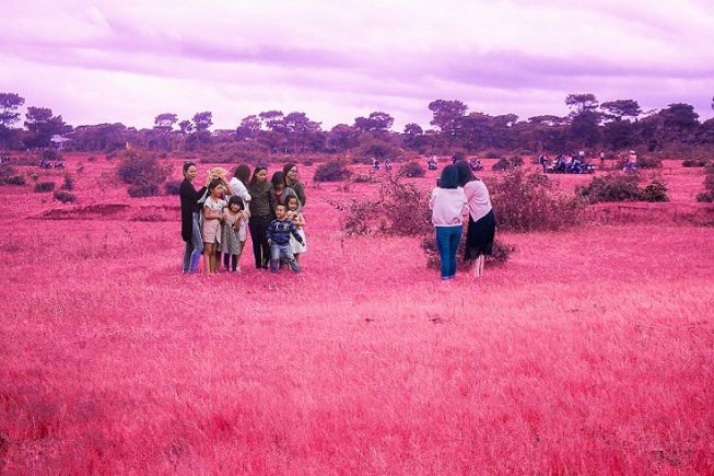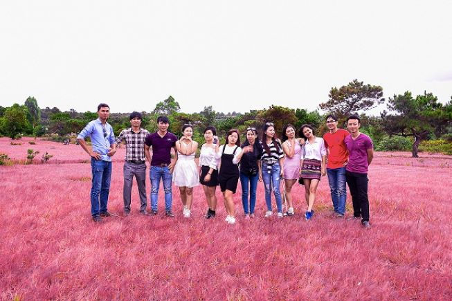 Rực rỡ đồi cỏ hồng ở Gia Lai đẹp như tranh vẽ hút khách đầu đông