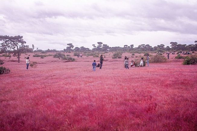 Vào đầu tháng 11, có một loại cỏ dại mọc giữa các rừng thông bắt đầu chuyển sang sắc hồng hồng, tím tím bao phủ cả một vùng đấtbanzan dài vô tận. Nhắc đến cỏ hồng nơi đầu tiên mọi người nghĩ đến là Đà Lạt thơ mộng, nhưng ít ai biết rằng cách trung tâm TP.Pleiku (Gia Lai) khoảng 20 km cũng có một đồi cỏ hồngrực rỡ không kém.