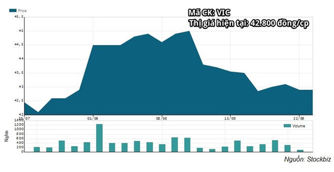 Theo đó, tính trong 10 phiên giao dịch gần nhất, cổ phiếu VIC đã giảm 4,7%, tương đương mức giảm 2.100 đồng/cổ phiếu. Tính theo khối lượng cổ phiếu đang lưu hành, Tập đoàn Vingroup đã "bốc hơi" hơn 5.500 tỷ đồng vốn hóa. Nắm giữ 26,45% vốn tại Vingroup, riêng khối tài sản của cá nhân tỷ phú Vượng hiện tại đạt 30.986 tỷ đồng, kém ông Trịnh Văn Quyết vỏn vẹn 19 tỷ đồng.