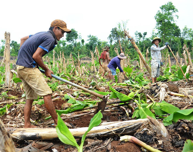 Ông Cường cũng cho biết thêm giá tiêu đang xuống thấp nên nông dân đã chặt bỏ những diện tích già cỗi, kém hiệu quả để chuyển qua trồng chuối.