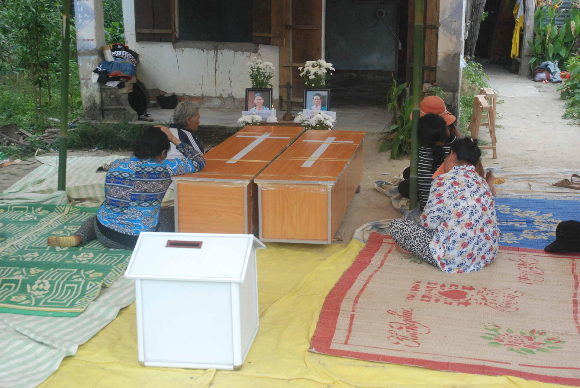 Căn nhà A Then rộng chừng 20m2 nằm ở rìa làng. Trong nhà, ngoài chiếc ti vi ra không còn vật dụng gì đáng giá. Trước giờ di quan, người thân lớn tuổi trong gia đình thương tiếc khóc xoa đôi quan tài. Người trẻ tuổi thì phải vào viện chăm lo cho Y Thuy và A Theo.