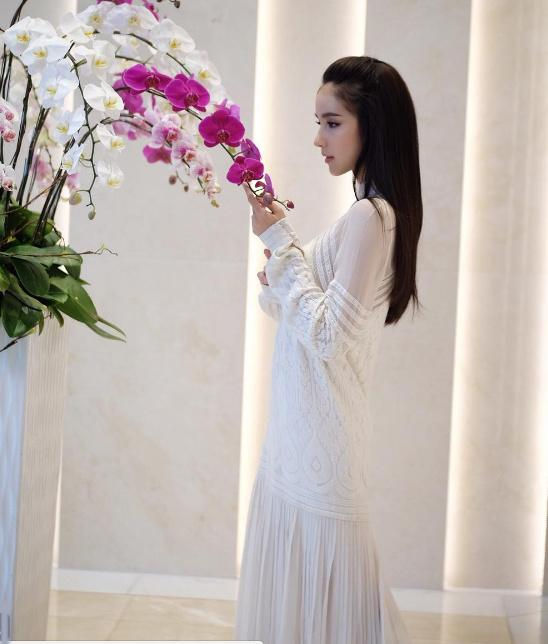 Yoshi Rinrada Thurapan diện đầm trắng, trang điểm tự nhiên khi dự sự kiện.