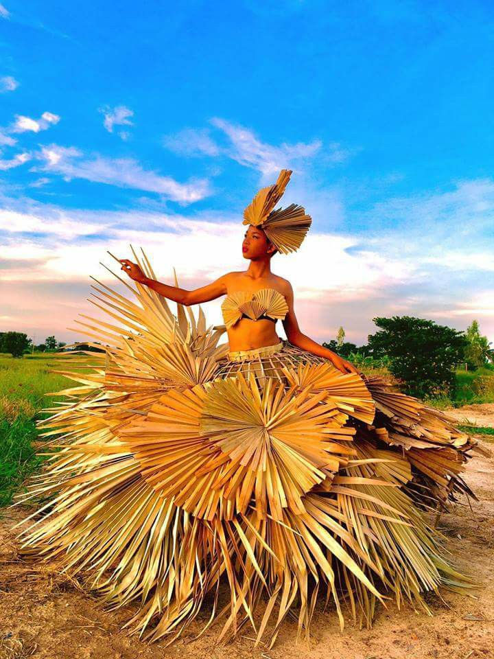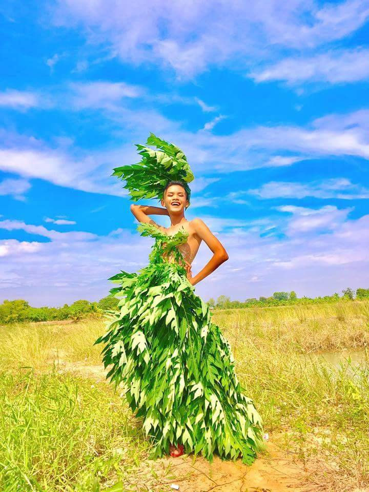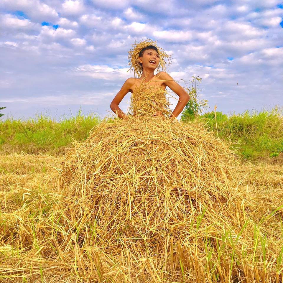 Đáng nói hơn nữa, trí tưởng tượng của nhóm bạn này được thể hiện xuất sắc ở chỗ, những trang phục lộng lẫy của họ đều được cắt ghép từ những vật dụng rất cơ bản của nhà nông như rơm rạ, lá cây và vải màn.