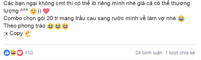 Có bạn nữ còn thêm hẳn gói 20 triệu đồng mang trầu cau sang rước về làm vợ, nhưng tất cả cũng chỉ mang tính chất giải trí, ăn theo phong trào.