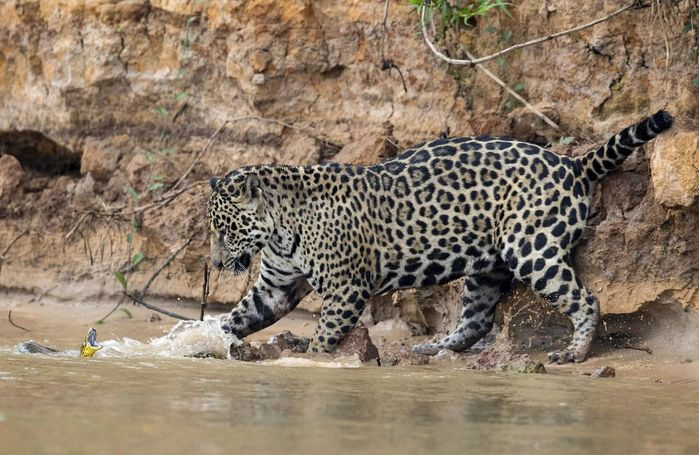 Chris Brunskill - một nhiếp ảnh gia động vật hoang dã đến từ Anh -trong chuyến đi thám hiểm bằng thuyền tới vùng đầm lầy Panatal ở bang Mato Grosso, Brazil vào tuần trước, bỗng phát hiện một con báo đốm đang lò dò bước tới triền sông. Có vẻ như nó đang mò mẫm và rình rập một điều gì đó. Dáng vẻ con vật khá thận trọng và chăm chú. Có vẻ như nó đang săn mồi.