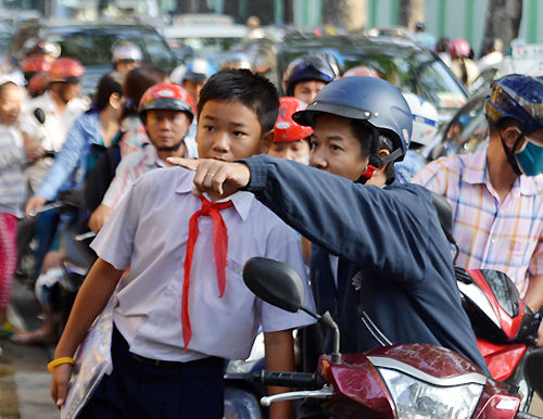 Các trường có bãi sân rộng mở cổng cho phụ huynh vào đón con em mỗi giờ tan học như: Tiểu học Lương Định Của (quận 3), Tiểu học Minh Đạo, Tiểu học Chánh Nghĩa (quận 5), THCS Lê Quý Đôn (quận 11)... Nơi nào không có bãi xe rộng thì trường và địa phương tìm nơi lân cận để phụ huynh có chỗ đưa đón con em.