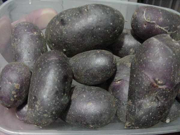 Khoai tây đen là một loại không bình thường. Họ có hình bầu dục điển hình của khoai tây truyền thống, nhưng tính năng thú vị nhất của nó là màu sắc.